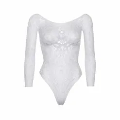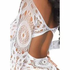 Wow them in this enticing crochet lace bodysuit by Leg Avenue. Giving off sexy boho vibes, the ultra-versatile long sleeve bodysuits only job is to make you look amazing. Perfect as a layering peice, this womens bodysuit features a unique lace lingerie pattern that molds to your curves perfectly, an open back accent, thong bottom, and snap crotch for easy wear. (Panty not included)