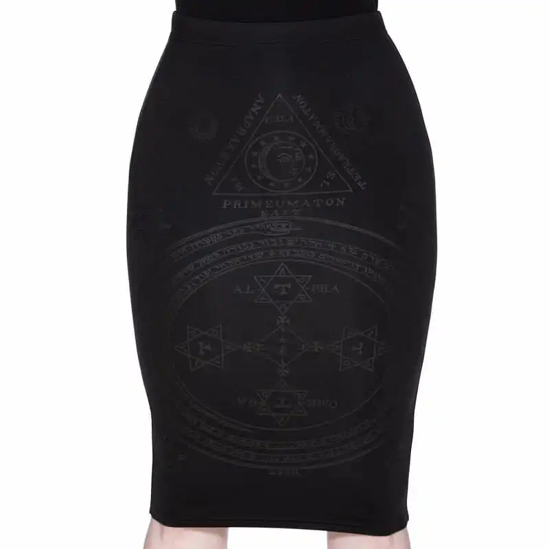 Mortals have no idea how beautiful the darkness is. The βEchoβ skirt is the piece yer closetβs been missing! Made using a super-stretch jersey which stretches to perfection for figure hugginβ fit that will have you feeling badass! Complete with custom-made print. Look great dressed up or down β depending on yer mood/moon!