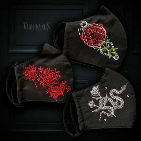 Our face masks collection also provides other cool items such as our Salem Vampire Mask with skull and cow images and the Embroidered Brocade Mask 5 Pack.