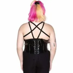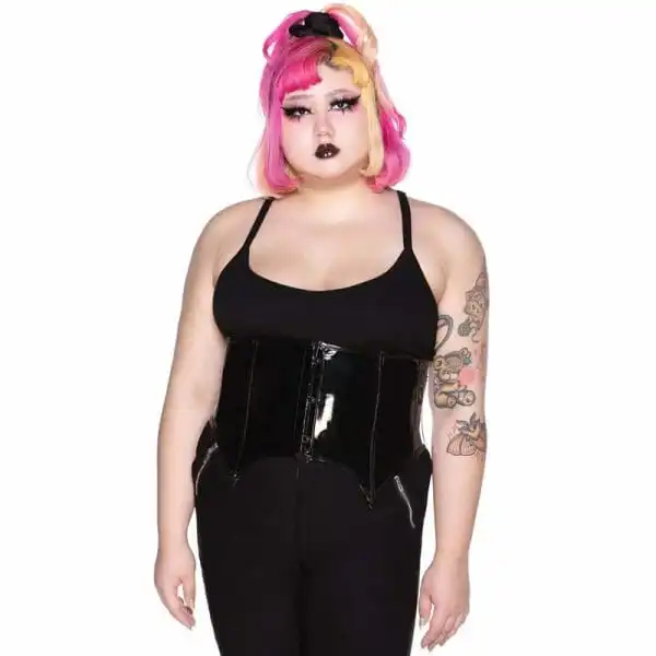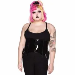 Make a statement with the โFreak & Destroyโ corset โ featuring a faux leather body with some shine to it, decorative ribbon detail, lace-up and bat wings at the back. Adds some drama to yer dusk-to-dawn lifestyle and rituals!
