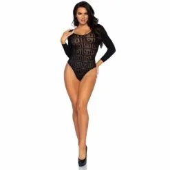 Cast your spell in the mesmerizing mosaic opaque bodysuit by Leg Avenue, featuring long sleeves, a scoop neckline, and cheeky thong back with snap crotch.