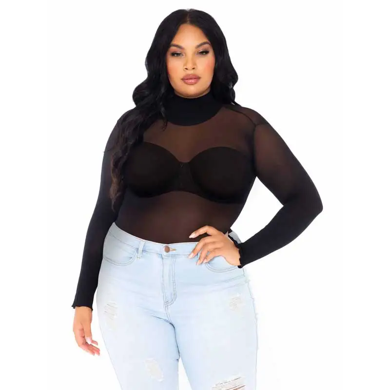 Dress up this versatile semi-opaque plus size bodysuit by Leg Avenue with your favorite jeans or skirt for a night out look that canβt miss. Featuring long sleeves and a snap crotch for comfortable wear, this black bodysuit is the perfect layering piece for festival outfits, paired with a cute bra, or under a blazer as a sexy lingerie top.