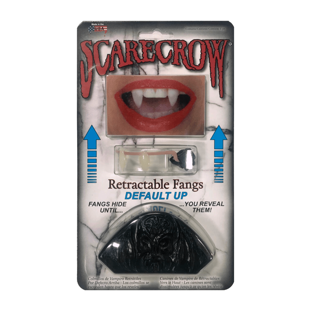 SCARECROW Retractable Fangs are a huge leap forward in vampire fang artistry & mechanical effects. Fully Functional Retractable Fangs that activate either up or down for the most startling fang effect ever available for Halloween, Cosplay, film or live performance! Easy to use, comfortable to wear, talk naturally, activate or hide them when you want. Brought to you by Vampfangs the most trusted source for vampire fangs since 1993!