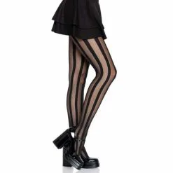 Sheer Tights w/ Opaque Vertical Stripes By Leg Avenue