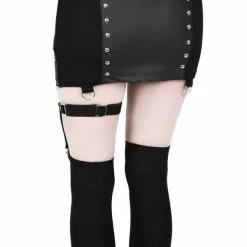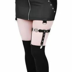 Cute and playful leg garter, βShellyβ is a perfect combination of faux leather and statement hardware. With adjustable elastic back, stud detail, and suspender holders.