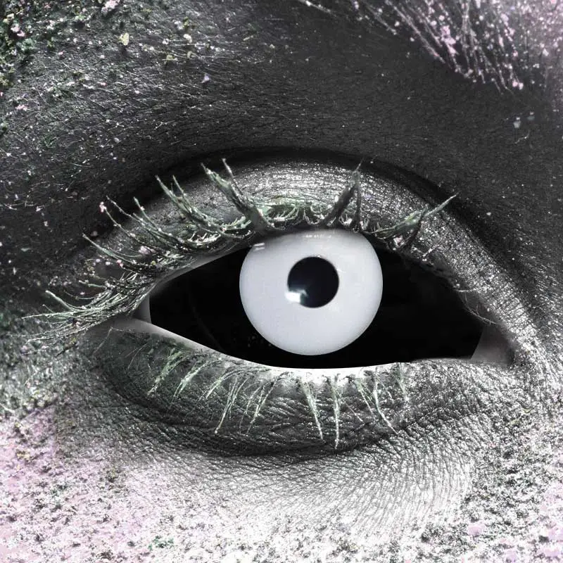 Our best selling whiteout style transformed into killer whiteout sclera contact lenses with a black background. These whiteout sclera contacts put your look over the top! Our sclera lenses offer full eye coverage and unbeatable comfort. These are also available in corrective strengths from 0.00 to -7.00!ย Hollywood movies have fueled the popularity of sclera contact lenses. This modern twist on a classic look are perfect for a wide range of characters. They are great for demons, monsters, creatures, vampires, aliens, and animals of all kinds. If you are looking for a high quality pair of sclera contact lenses, then your search is over.