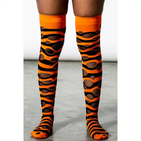When all else fails, get new socks! Classic and exxxtra long socks β βWretched Soulβ distress socks featuring contrast stripes and thigh-high look. With distressed details all over.